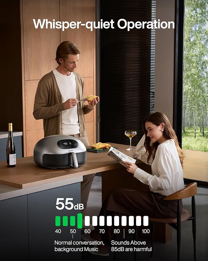 - ๐ช๐ต๐ถ๐๐ฝ๐ฒ๐ฟ-๐ค๐๐ถ๐ฒ๐ ๐ข๐ฝ๐ฒ๐ฟ๐ฎ๐๐ถ๐ผ๐ป | Enjoy cooking with minimal noise. The Typhur Dome is quiet, operating at 55dB. This means you can cook delicious, crispy food without having to shout over the noise.