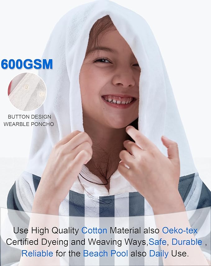 - Pure Cotton Comfort:Hooded Poncho Towel is Made of 100% soft cotton, Experience ultimate softness and comfort with our pure cotton poncho, Its gentle touch and plush texture provide a soothing and cozy sensation after swimming or bathing