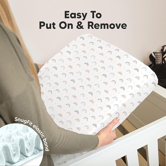 - Easy To Put On - Our fitted crib sheet uses SnugFit Tech, a smart fabric knit that allows the fabric to stretch when you are fitting or removing the crib sheets neutral from the toddler crib. No more struggling with rigid fabric!