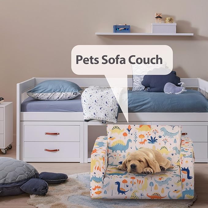 - 【Cartoon Pattern and Suitable for Any Environment】: The childrens couch are available in playful patterns that children will love. Whether it's placed in a living room, playroom, or bedroom. Available in multiple styles: grey, beige, pink, star, grey dinosaur, pink rainbow, twill pegasus.