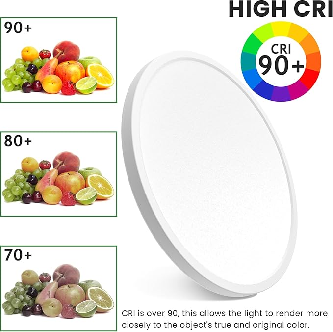 - 【Brightness Dimmable and 3 Color Modes】-Hepside bathroom light fixtures ceiling mount has 3 kinds of color temperature (Warm white 3000K, Natural white 4500K, Daylight white 6000K), the brightness range can also be adjusted between 10%-100%.Also available as a night light, this kitchen ceiling light fixtures has a minimum dimming brightness of 10% at 3000K warm white. Children or the elderly will feel safer at night due to the quiet and comfortable light source.