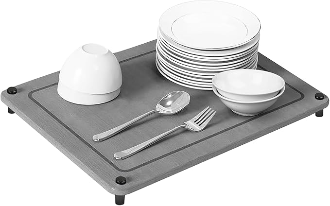 Stone Dish Drying Mat for Kitchen Counter 15.6 x 11.7 Inch Quick Dry Dish Drying Stone Super Absorbent Diatomaceous Earth Dishes Drying Mat with Non-Slip Feet for Kitchen Sink Water Absorbing - Grey