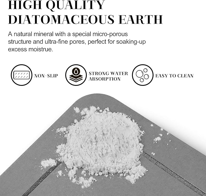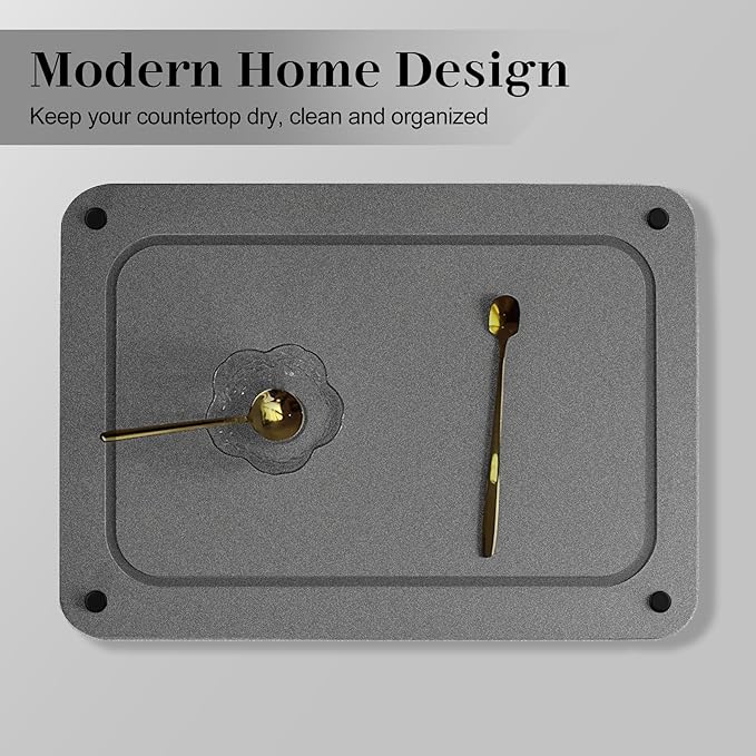 - 【Modern & Versatile】Our diatomite drying mat is stylish, modern and versatile. The size at 15.6“x11.7" fits most kitchen countertop, you can place the mat under dish racks to absorb drips or place washed dishes directly on the mat to dry. It can also be used as a tray for your bathroom and plants, a feeding mat for your pets.