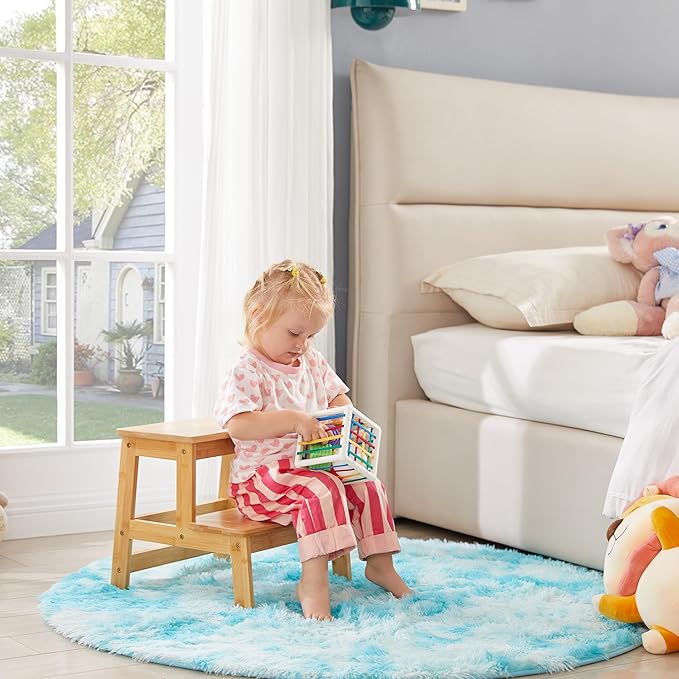 Bamboo Step Stools for Adults Kids, 2 Step Stool for Kichen/Bathroom/Bedside Step Stool - Holds up to 350Lb (Natural)