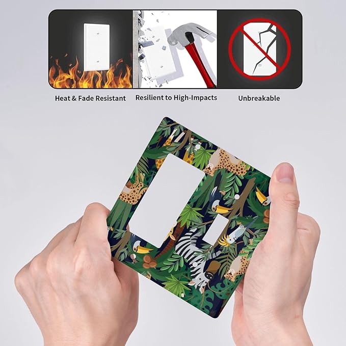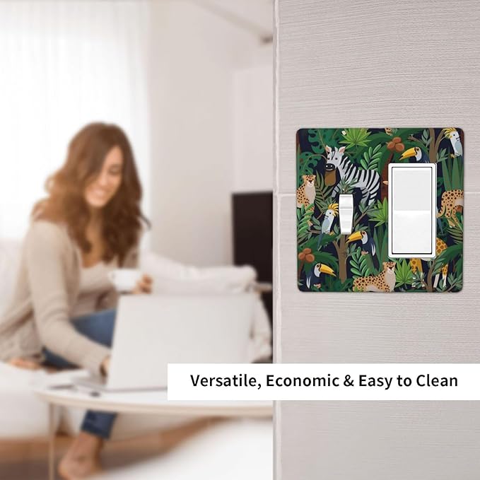 Cartoon Animal Zebra Leopard Giraffe Bird Leaf 2 Gang Single Toggle Rocker Combination Nursery Light Switch Covers Decorative Wall Plate Cover Electrical Faceplate Switchplate for Kidroom