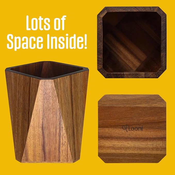 Wooden Utensil Holder - Stylish Utensil Crock - Reliable Utensil Holder for Countertop - Kitchen Crock for Utensils - Versatile Kitchen Utensil Holder - Acacia Wood Utensil Holder by Looni
