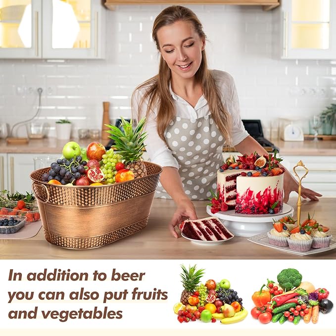 - Strong to Hold: the beverage bucket is constructed from stainless steel and is further enhanced through a galvanized process to avoid leakage and rustproof, allowing you to enjoy drinks longer; The bronze color exudes an elegant and timeless appeal, which enhances the aesthetic appeal of your party