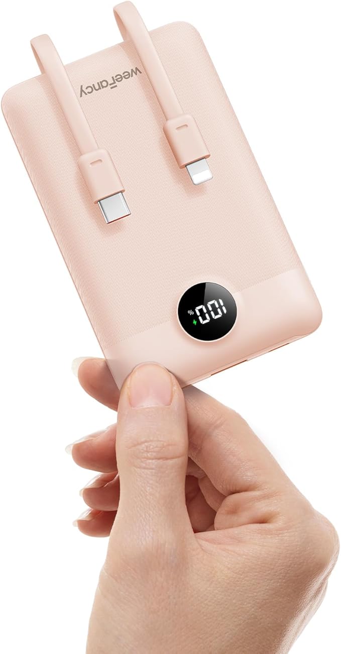 - [ Portable Charger with Built-In Cables ] This slim battery pack charger portable is a one-stop solution with built-in iOS, USB C, and USB-Micro cables. This built in cables battery pack charger portable is universally compatible with popular smart devices, including iPhone 15/14/13/12/11/X/8/7/6 series, , Samsung Galaxy S24/S23/S22/S21/S10/S9/S8, Galaxy Z Flip/Z Fold, Galaxy A51/52/53/54/55, Note 20/10, Google Pixel series, and many more smartphones and USB-C devices
