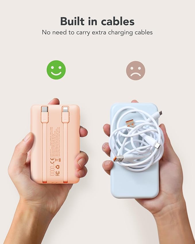 - Special Feature : Small Size, Mini 10000mah power bank, USB C, Built In Cable, Fast Charging