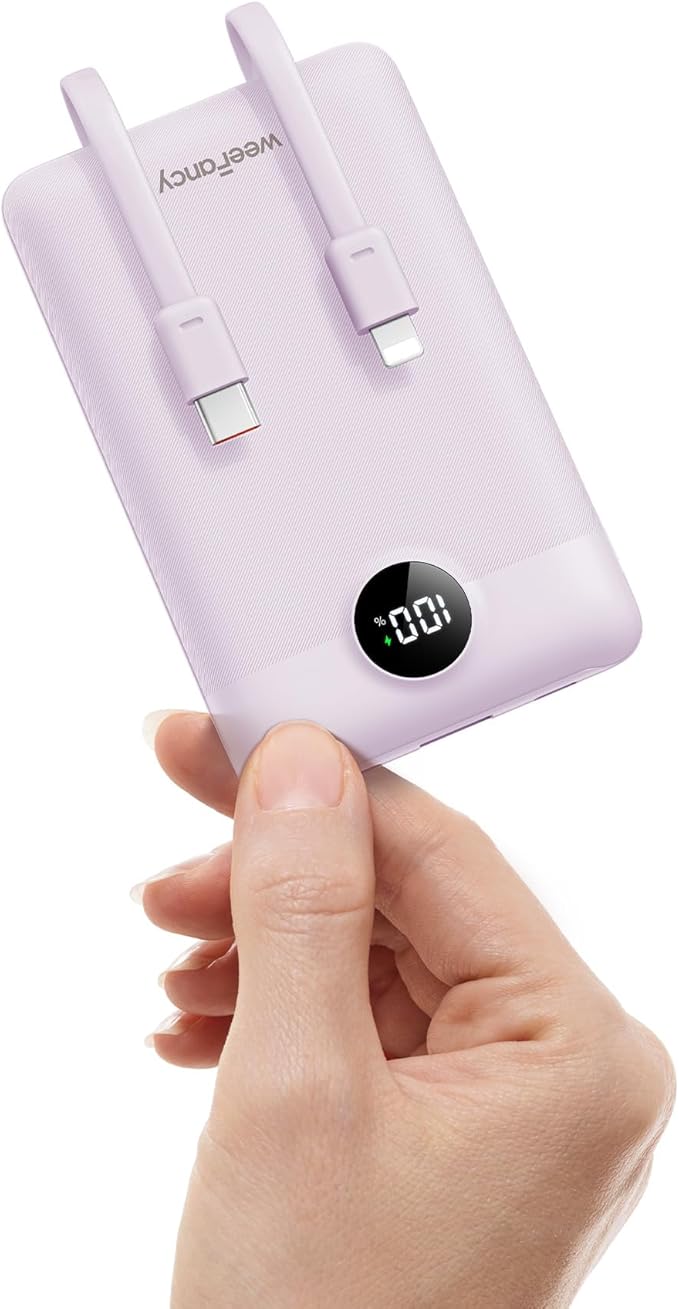 - [ Portable Charger with Built-In Cables ] This slim battery pack charger portable is a one-stop solution with built-in iOS, USB C, and USB-Micro cables. This built in cables battery pack charger portable is universally compatible with popular smart devices, including iPhone 15/14/13/12/11/X/8/7/6 series, , Samsung Galaxy S24/S23/S22/S21/S10/S9/S8, Galaxy Z Flip/Z Fold, Galaxy A51/52/53/54/55, Note 20/10, Google Pixel series, and many more smartphones and USB-C devices