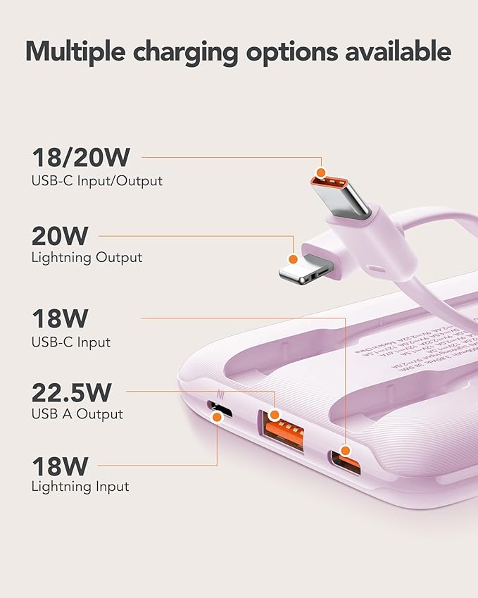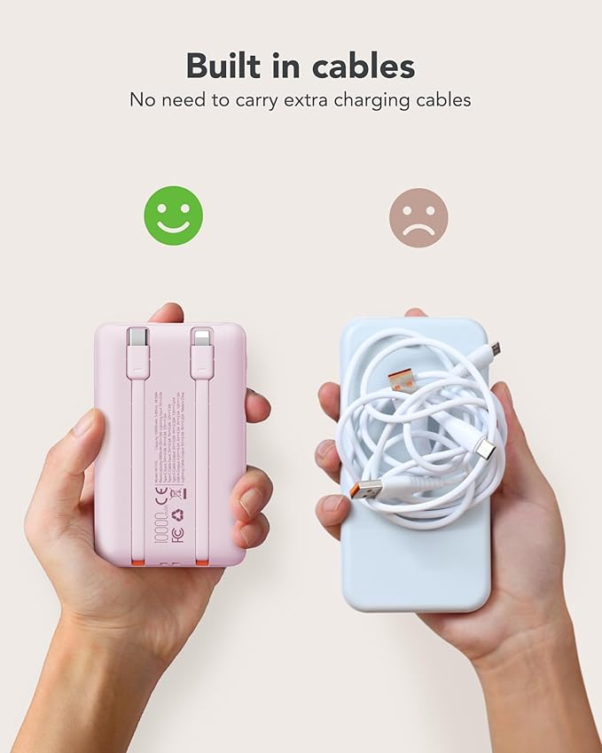 - Special Feature : Small Size, Mini 10000mah power bank, USB C, Built In Cable, Fast Charging
