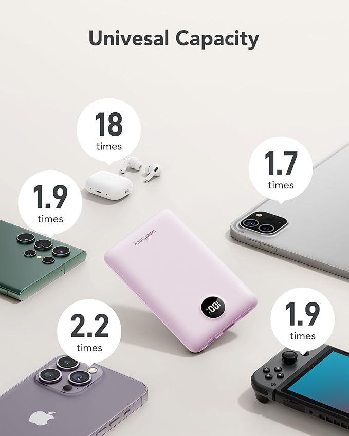 - [ Airline approved & Absolute Safety ] This small power bank for iphone is certified by UL 2056, CE, RoHS, IEC 62133, FCC, and complies with aviation safety standards. The portable battery Equipped with intelligent protection measures and advanced fire-resistant materials, it guards against issues such as overcurrent, overvoltage protection, overheating, and overcharging. Safety is always our top priority