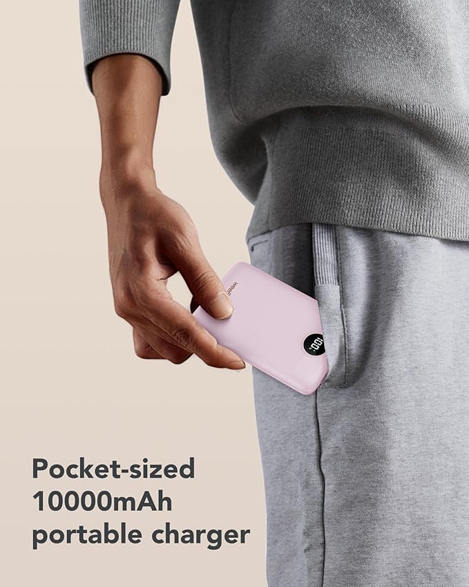 - [ Ultra Compact, Lightweight, and Thin ] Experience unparalleled portability with the slimmest and smallest portable phone charger. This lightweight power bank measures 10.6 x 6.86 x 1.6 cm and weighs only 0.36 lb (165 g). Its charge card design allows it to easily fit into your pocket, handbag, or even wallet. Small but powerful, the mini portable phone charger 10000mAh provides ample charging capacity for your gadgets on the go
