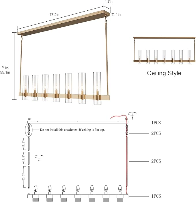 - [Stunning Modern Design] Our 7-light farmhouse linear chandelier is a sleek, linear pendant light fixture that adds an exquisite touch of style and sophistication to your kitchen island or dining room.
