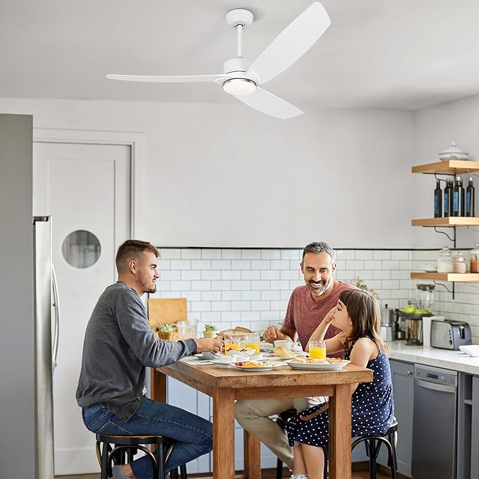 Ohniyou 56 Inch White Ceiling Fan with Lights, Modern 3 Blades Ceiling Fan with Remote/APP Control, Reversible DC Motor, Dimmable 3 CCT, Indoor Outdoor Ceiling Fan for Covered Patios Living Room