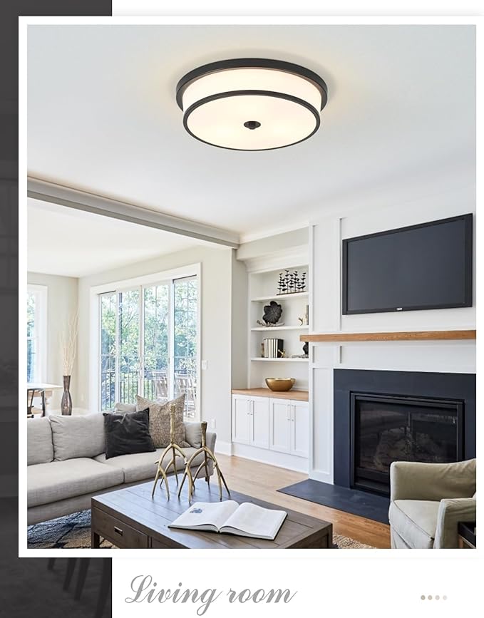 16 inch Flush Mount Ceiling Light, 3-Light Close to Ceiling Light Fixtures with Black Finish for Livingroom Bedroom Kitchen Diningroom(Black)