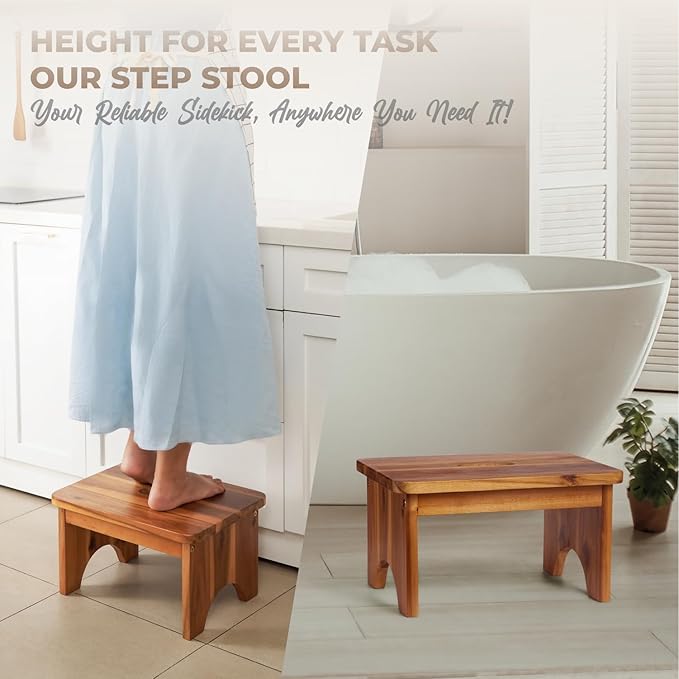 - 🌳 NATURAL ACACIA WOOD: Discover the enduring charm of Acacia wood in our step stool. Crafted for robustness, water resistance, and anti-warping, it's a functional and aesthetically pleasing addition to your space. The distinct wood grains make each stool unique, celebrating the beauty of nature in your home.