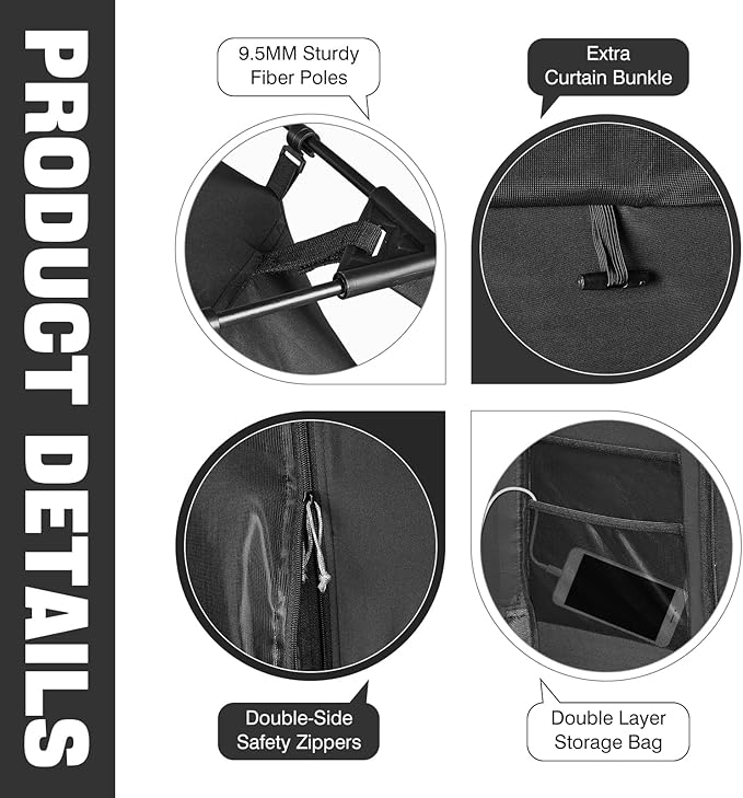 - EXCELLENT CUSTOMER SERVICE: The bed tent comes with a double storage bag, which is convenient for you to put other items such as cell phones and books, and also keep your tent tidy. The set includes 1 king size bed tent, 2 fiber poles with plastic elbows, 4 long fiber poles, and 1 storage bag. The portable bed tent is perfect for bedrooms, dorms, traveling, sibling's rooms, or partners who need to sleep during the day. May our tent be your best choice! Our goal is to serve every customer.