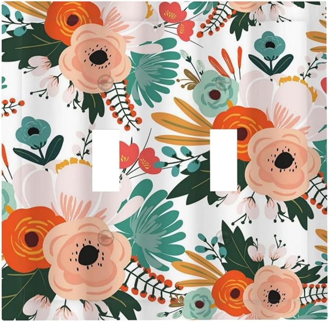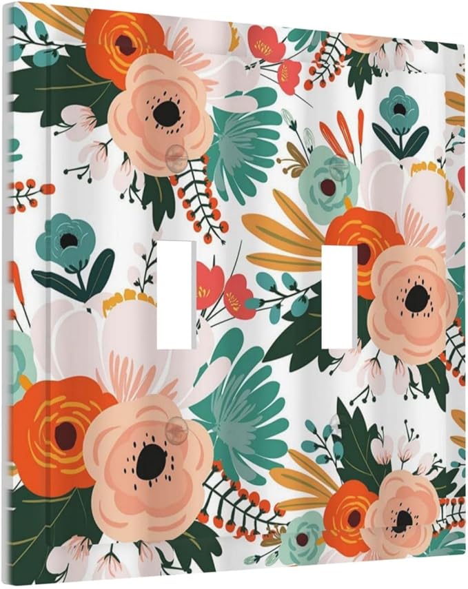 Rustic Floral Boho Colorful Flower Double Toggle Light Switch Covers 2 Gang Wall Plate Dual Decorative Switchplate Electrical Faceplate for Farmhouse Bathroom Bedroom Kitchen Decor