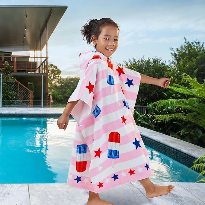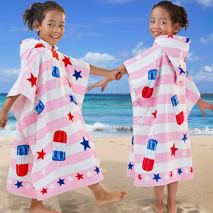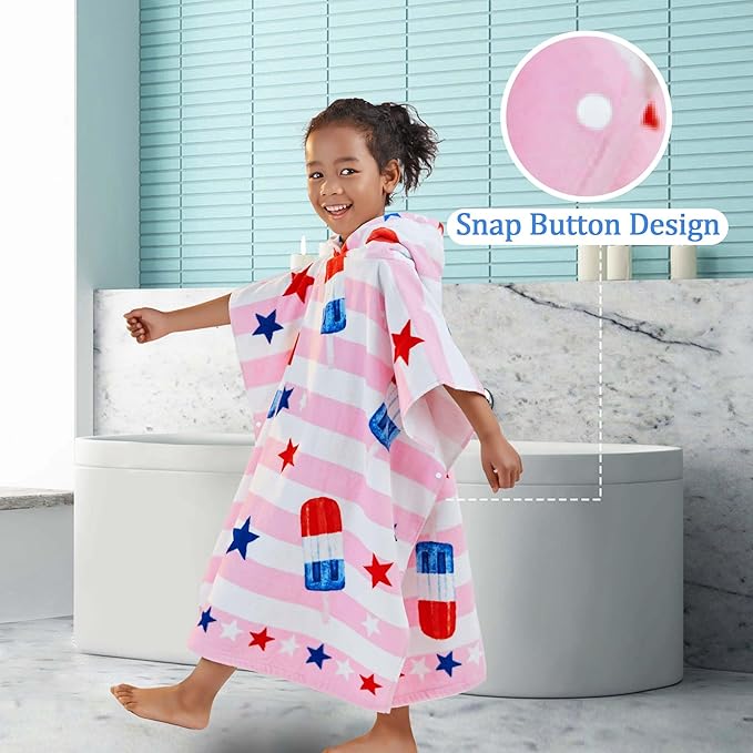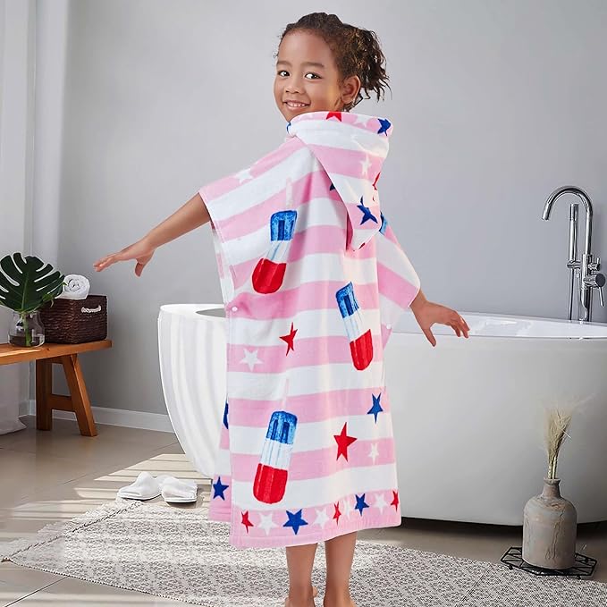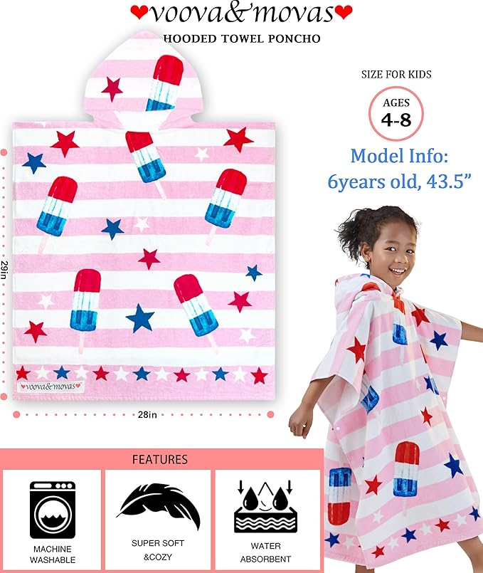 VOOVA & MOVAS Kids Beach Towels with Hood (4-8Years), Super Absorbent Soft Cotton Bath | Pool Towel for Boys and Girls, Perfect for Swim | Gifts, Pink Ice Lolly