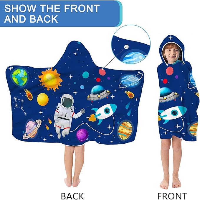 - SAND FREE AND STYLISH - The sand will disappear when you shake this towel. Don’t worry to take sand at home; The cute spaceman hooded towel is printed single side with stylish design, you are absolutely unique on the beach