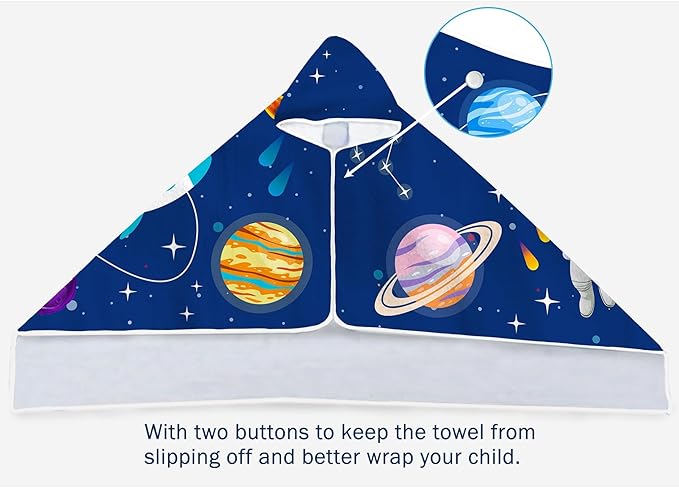 - Multifunctional - Our spaceman towels with hood for kids and little girls can be used at home for bath-time fun, and the spaceman hooded towel can also be used in the beach or swimming pool, protecting your children from catching cold after long water playing, drying quickly and keeping warm with comfortable experience