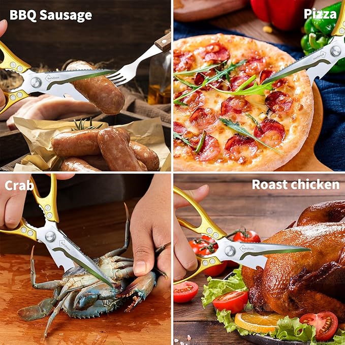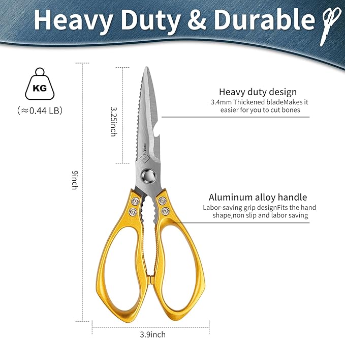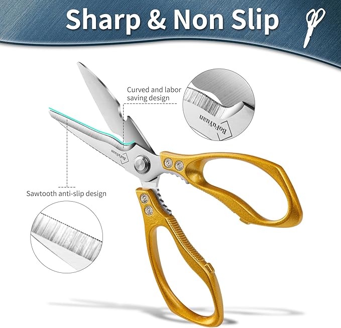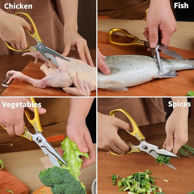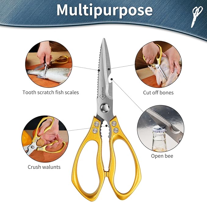 Kitchen Shears for Food Heavy-Duty: Multipurpose Kitchen Shears for Cutting Chicken, Bone, Meat, Food, (9'' Gold)