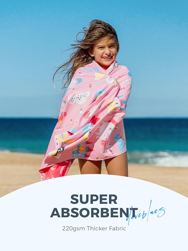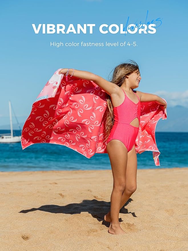- 🌊Kid-Friendly & Colorful: Thanks to digital printing, colors stay vivid wash after wash. Your kids will love our signature double-sided prints and have twice the fun with them. High color fastness level of 4-5. Everyone needs a cute towel, especially kids. They can take their favorite towel to swimming, the beach, camping, hiking, picnics, pool parties, sleepovers, on vacation, and road trips.(Note: Wash before first use for increased softness.)