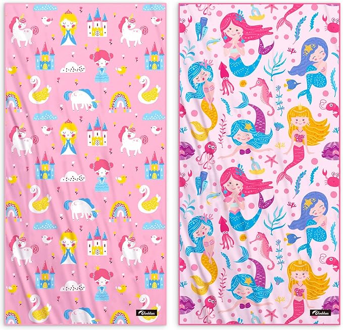 Kids Beach Towels 2 Pack 60''x30'', Quick Dry, Sand Free, Compact, Lightweight, Absorbent, Girls & Boys Large Microfiber Towels Gifts for Pool, Swim, Cruise Essentials