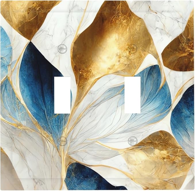 3D Abstract Digital Art Marble Double Toggle Light Switch Covers 2 Gang Wall Plate Dual Decorative Switchplate Electrical Faceplate for Bathroom Country Kitchen Bedroom Decor, 4.9" x 5"