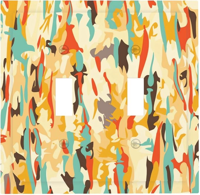 Modern Camouflage Art Double Toggle Light Switch Covers 2 Gang Wall Plate Dual Decorative Switchplate Electrical Faceplate for Bathroom Country Kitchen Bedroom Decor, 4.9" x 5"
