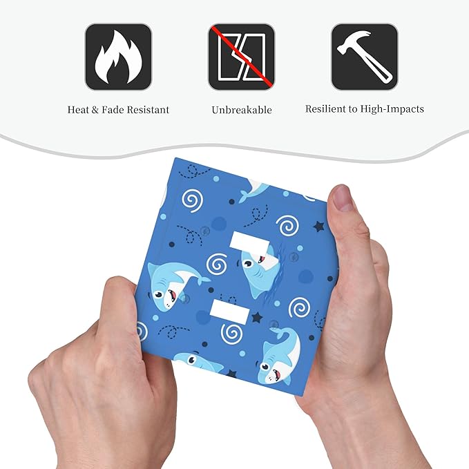 Cute Sharks Cartoon Double Toggle Light Switch Covers 2 Gang Wall Plate Dual Decorative Switchplate Electrical Faceplate for Bathroom Country Kitchen Bedroom Decor, 4.9" x 5"