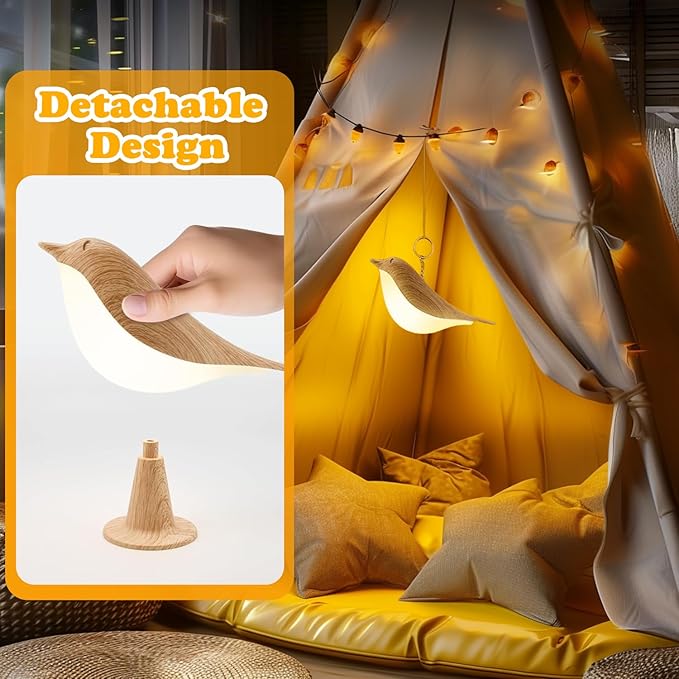 - 【Detachable & Cordless Design】The bedside lamp restores the appearance of the bird, features a detachable base and a hangable ring on the back, which is a unique decoration to allow you to hang it anywhere.This bird light makes you easy to carry everywhere at dark night without tumbling.