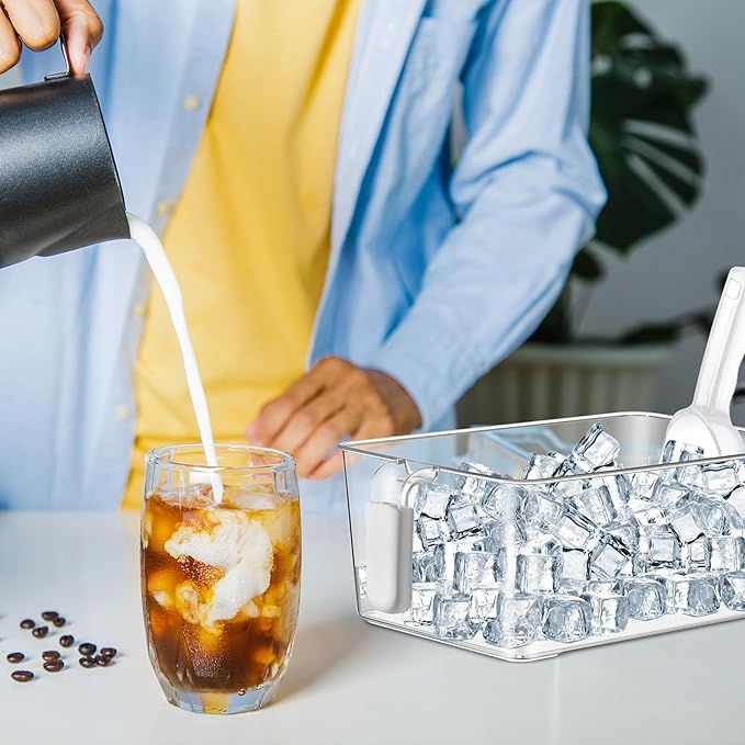 - Quality Materials with Comfort in Mind: this quality ice container for freezer and ice scoop for freezer bin are both crafted from safe plastic materials, the bin is featured comfortable silicone cover handles, enhancing the ease of use; All components are safe, reliable, and comfortable, ensuring product longevity