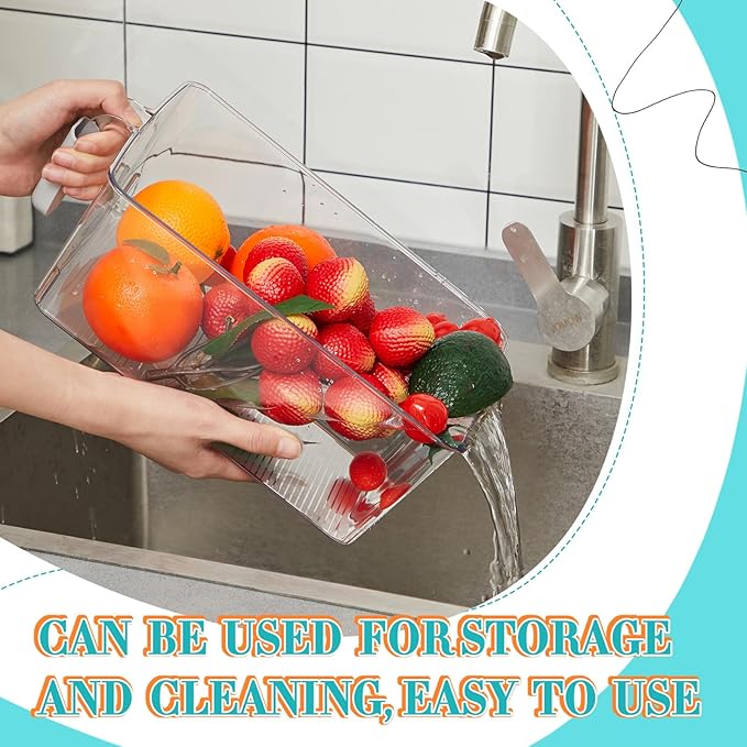 Havawish 2 Set Ice Bin and Flexible Scoop Set Plastic Freezer Ice Bin with Pull out Handle Clear Ice Storage Ice Bucket for Freezer Ice Container with Ice Bucket Scoop Kitchen (10.83 x 7 x 4.33 in)