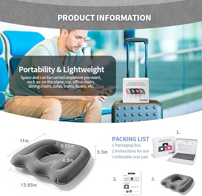 - Versatile and Multi-Scene Use: Our inflatable cushions are perfect for a variety of settings, from the office to the car to the home. They are portable and easy to carry, making them a convenient and practical accessory for anyone looking to improve their comfort while sitting.