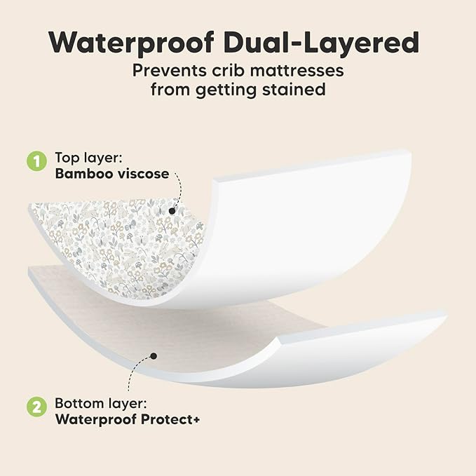 - Quality Doubled Down - Double-layered, double-stitched, and double the value. These machine-washable, dryable waterproof crib sheets offer lasting, reliable protection for your baby's crib mattress, giving you more time for the things that matter.
