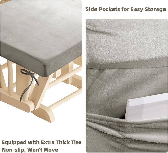 5 PCS Velvet Glider Rocker Replacement Cushions with Side Storage Pocket, Thickened & Supportive Cushions Set for Indoor Nursery Rocking Chair, Khaki