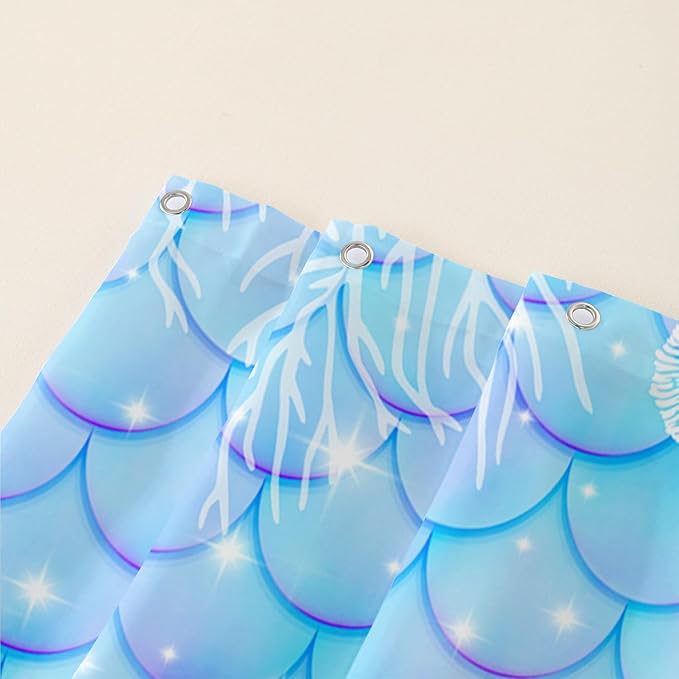 AILONEN Cartoon Octopus Shower Curtain 72"W*78"H For Bathroom, Ocean Coral Shell Fish Scale Print Bathroom Curtain for Kids Girls Women Bath Curtain Polyester Waterproof Shower Curtain With 12 Hooks