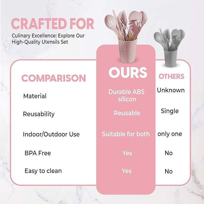 - Multi-Functional Design: The silicone utensils are versatile and can be used for a variety of tasks in the kitchen. They are ideal for cooking, baking, serving, and mixing. The set includes tools for both wet and dry ingredients, making it convenient to use for different recipes.