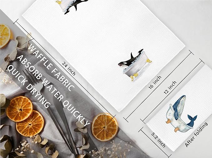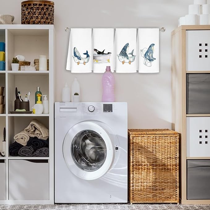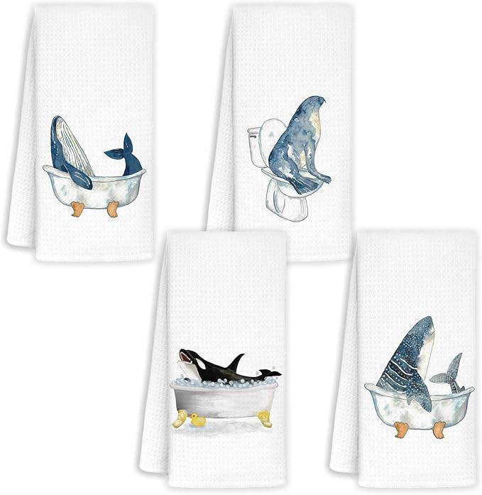 Whale Shark Seal Coastal Beach Hand Towels for Bathroom Set of 4 - Nautical Hand Towels for Bathroom,Whale Decor, Nautical Beach Bathroom Decor,Ocean Bathroom Decor,16x24