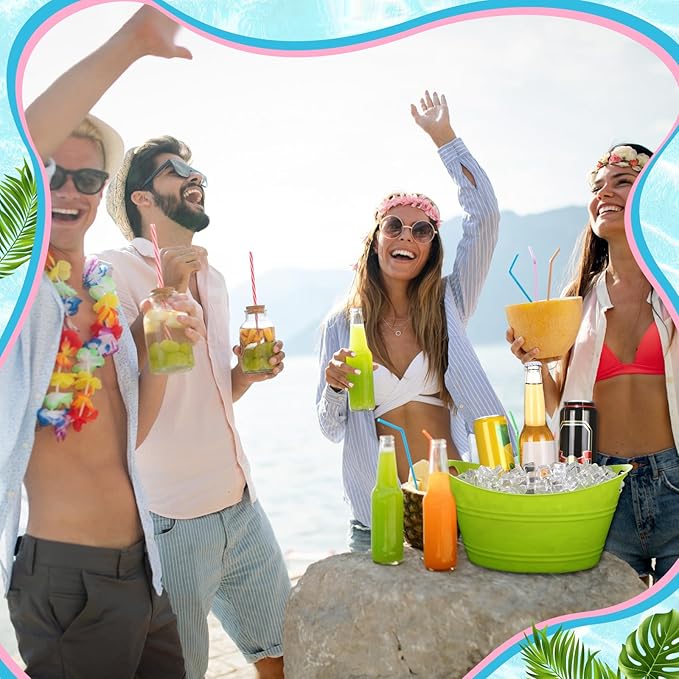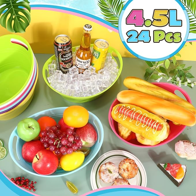 Norme 24 Pcs Oval Storage Tub with Handles, 4.5L Plastic Ice Bucket Wine Beer Champagne Bottle Drink Cooler Tub for Parties Beverage, Storage Basket (Multicolor)