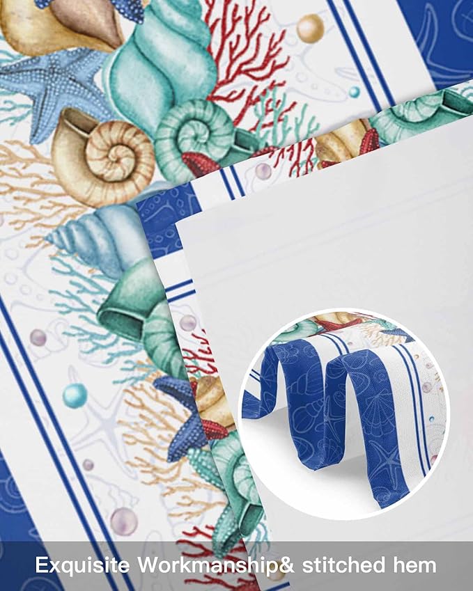 Vandarllin Coastal Beach Kitchen Curtains Valances for Windows Nautical Ocean Seashell Coral Starfish Rod Pocket Window Treatment for Kitchen/Living Room/Bedroom/Bathroom, 42" X 12", Blue Teal Summer