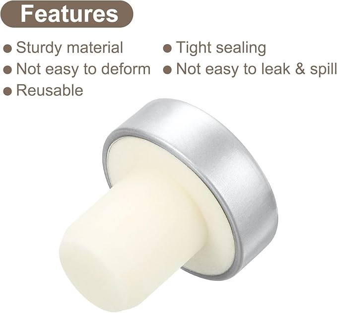 - [Material] - The bottle stopper is made of rubber material with a top wrapped in aluminum, it is very durable and can be reused. Designed for long-term use and won't bend or break over time, it's also flexible enough to seal bottles tightly.