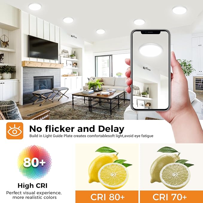 - 【Simple Install & Ultra Thin】0.72 inch ultra-thin LED ceiling light can be recessed mounted and surface mounted in any ceiling area, the user-friendly base design can match 99% of junction boxes. There is no need to hire an electrician. We will provide installation instructions and one person can complete the installation in minutes.
