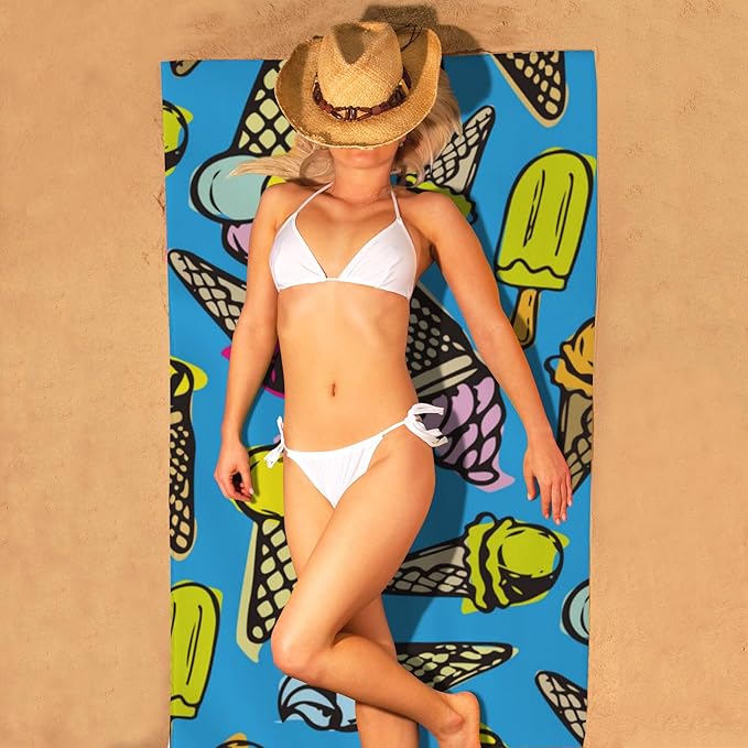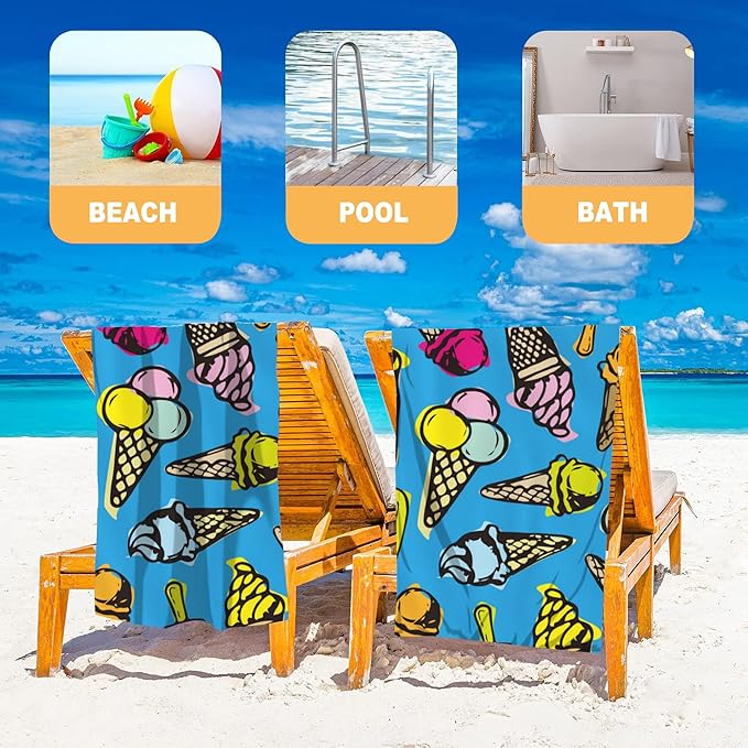 Beach Towel, Vintage Ice Cream Doodle Beach Towel Oversized Sand Proof Absorbent, Quick-Dry Bath Pool Swim Towel for Shower Spa Vacation, 29.5” X 59”