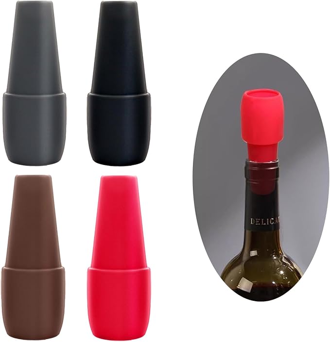 Wine Stopper for Keeping Wine & Champagne Fresh, 4PCS Reusable Silicone Wine Sealer for Wine Bottles, Wine Bottle & Beverage Stopper for Home Use.