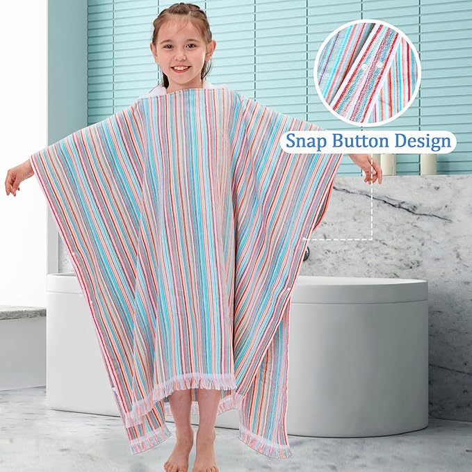 - Large Size: Our oversized hooded beach pool towel poncho measures 82"x38" in full length and folds to a compact 41"x38" (excluding the hood), Designed to comfortably fit big kids (8 years old and up) and teenagers