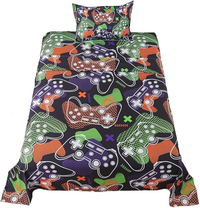 - 【TWIN SIZE】: The gamer theme bed sheet set 3 piece, 1 flat sheet 66" x 96", 1 fitted sheet 39" x 75" + 14” deep, 1 pillowcase 20" x 30".