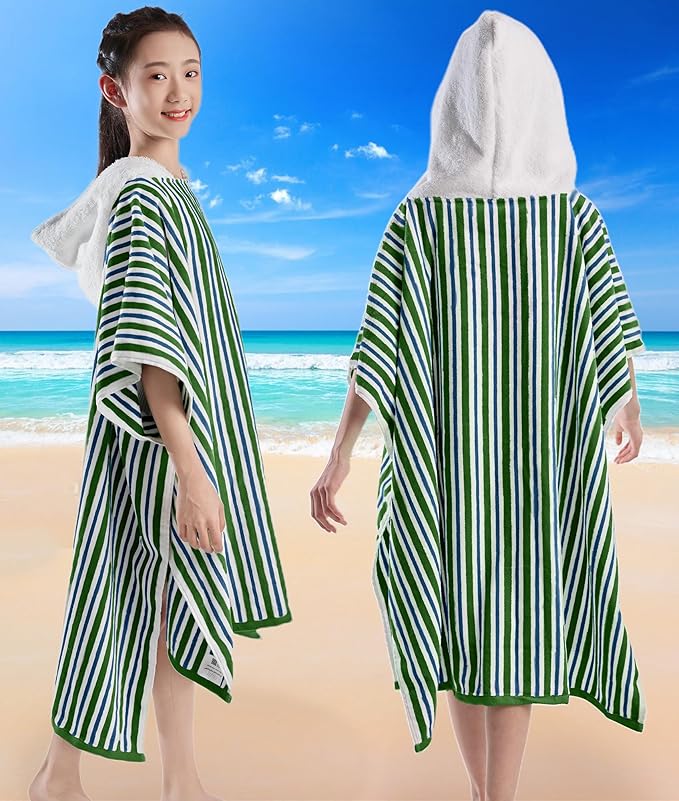 - Large Size: Our oversized hooded beach pool towel poncho measures a full 70"x38" and folds compactly to 35"x38" (excluding the hood), Designed to comfortably fit big kids (8 years old and up) and teenagers